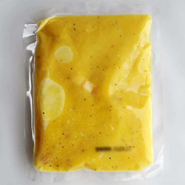 袋のまま湯煎で5分程温めてください。レンジで温める場合は別の容器に移してから加熱してください。
