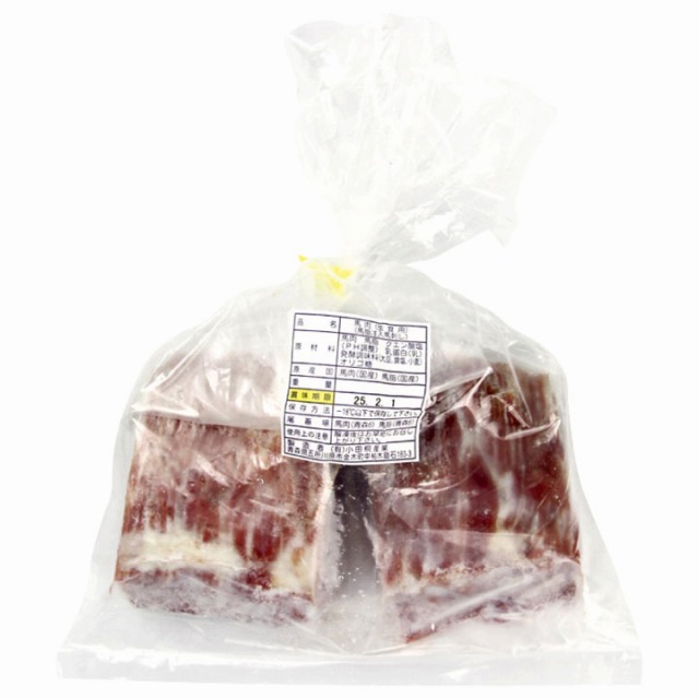 馬肉(国産)、馬脂、クエン酸塩(PH調整)、乳蛋白(乳)、発酵調味料(大豆、食塩、小麦)、オリゴ糖